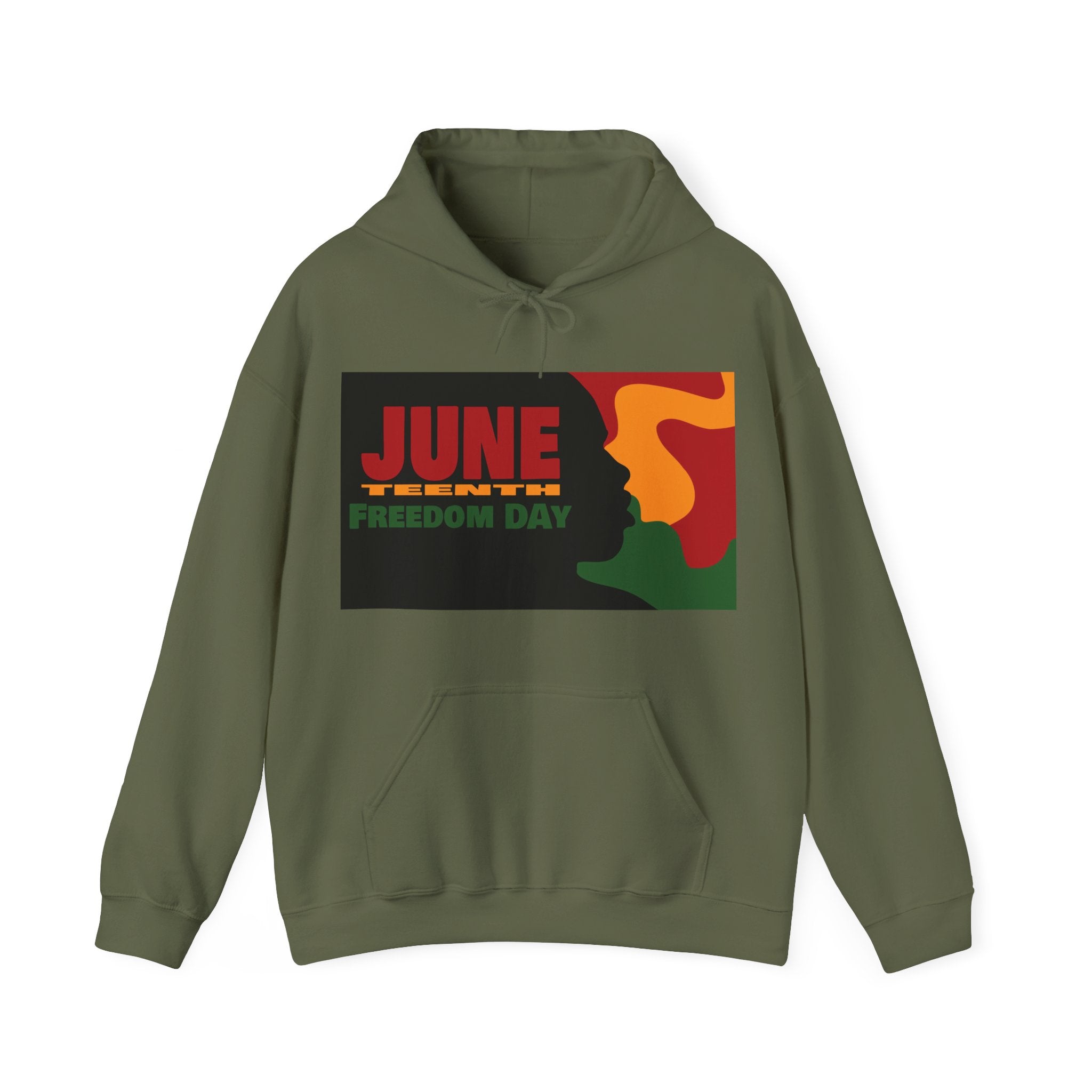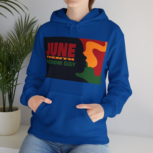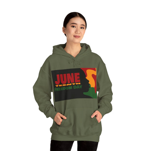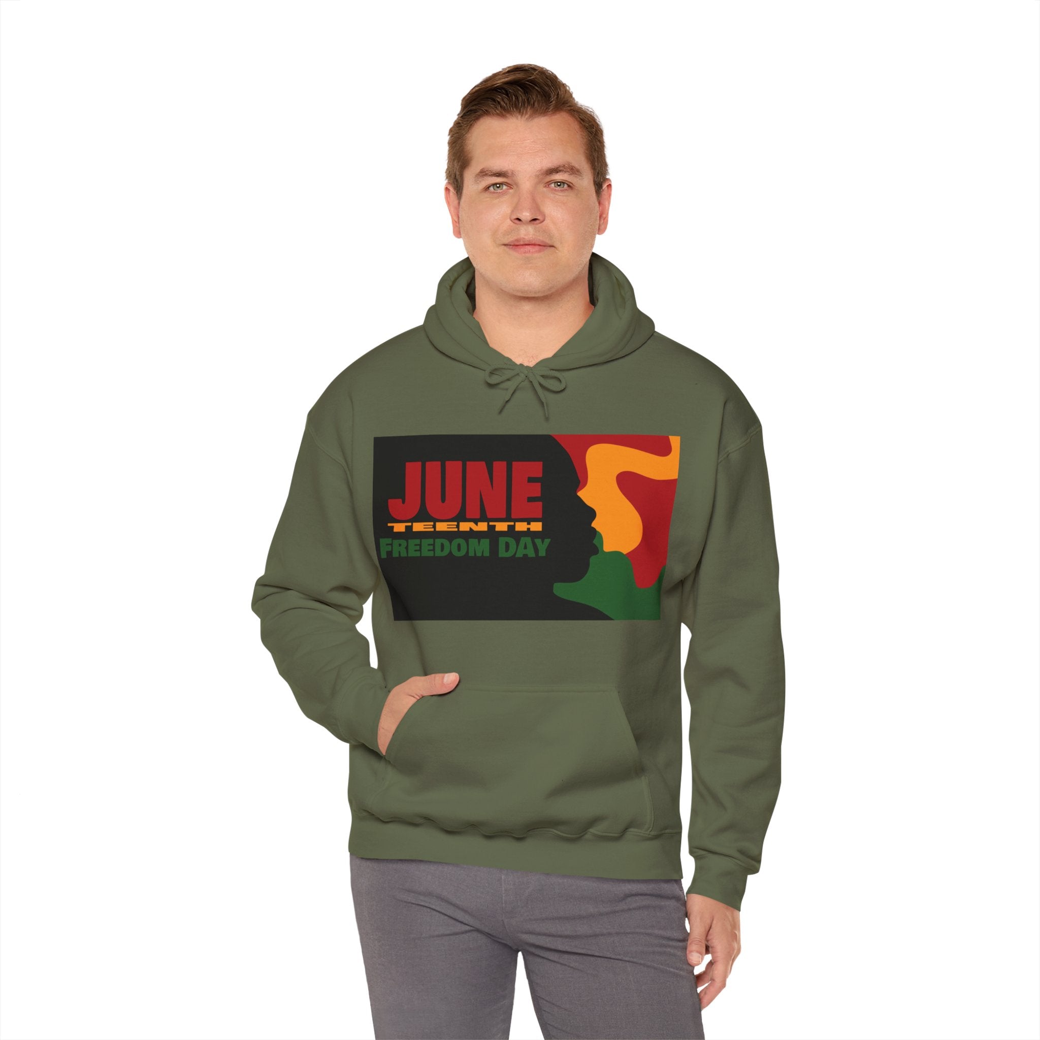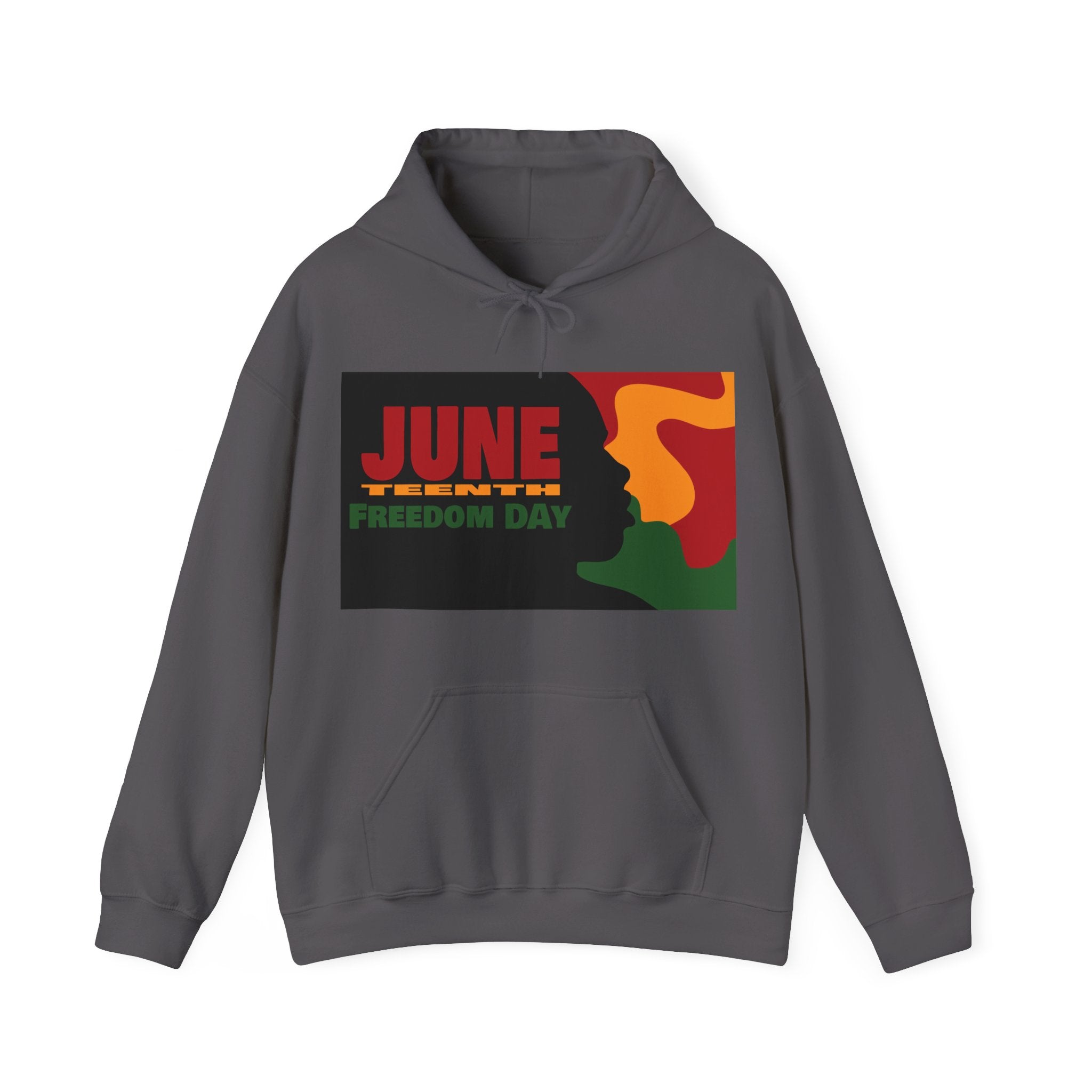 Celebrate freedom and heritage with this unisex heavy blend hooded sweatshirt, featuring a striking Juneteenth logo. Designed for comfort and style, this sweatshirt is perfect for any cold day, ensuring you stay warm and make a statement.